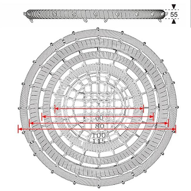 • Подвесы качелей изготовлены из трёхпрядного каната толщиной 15 мм;
